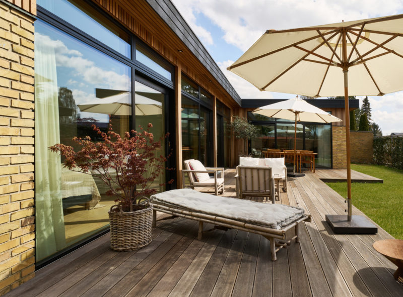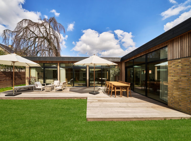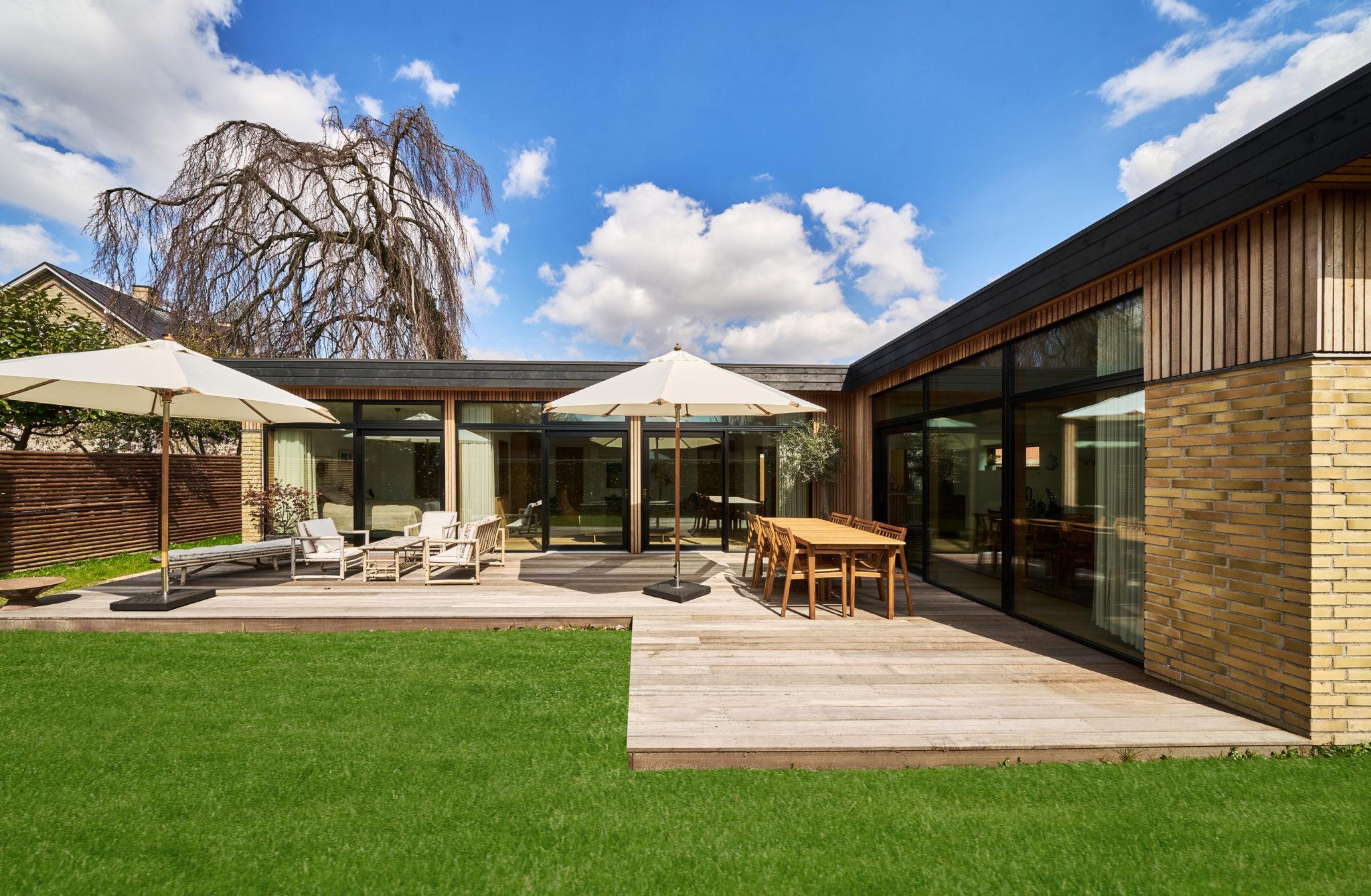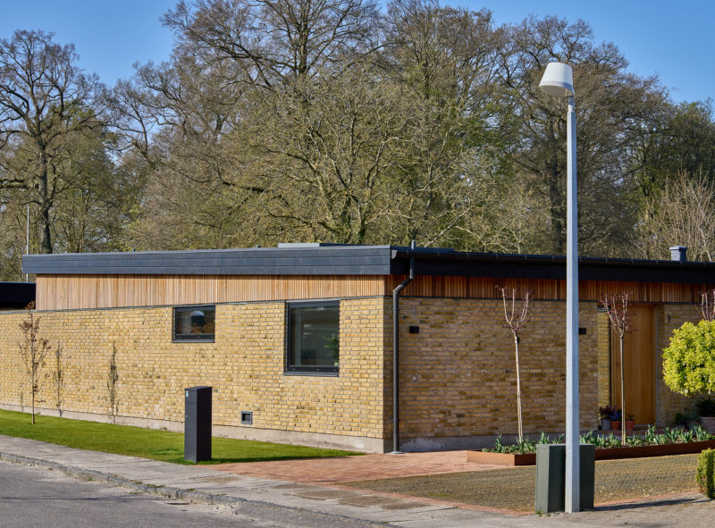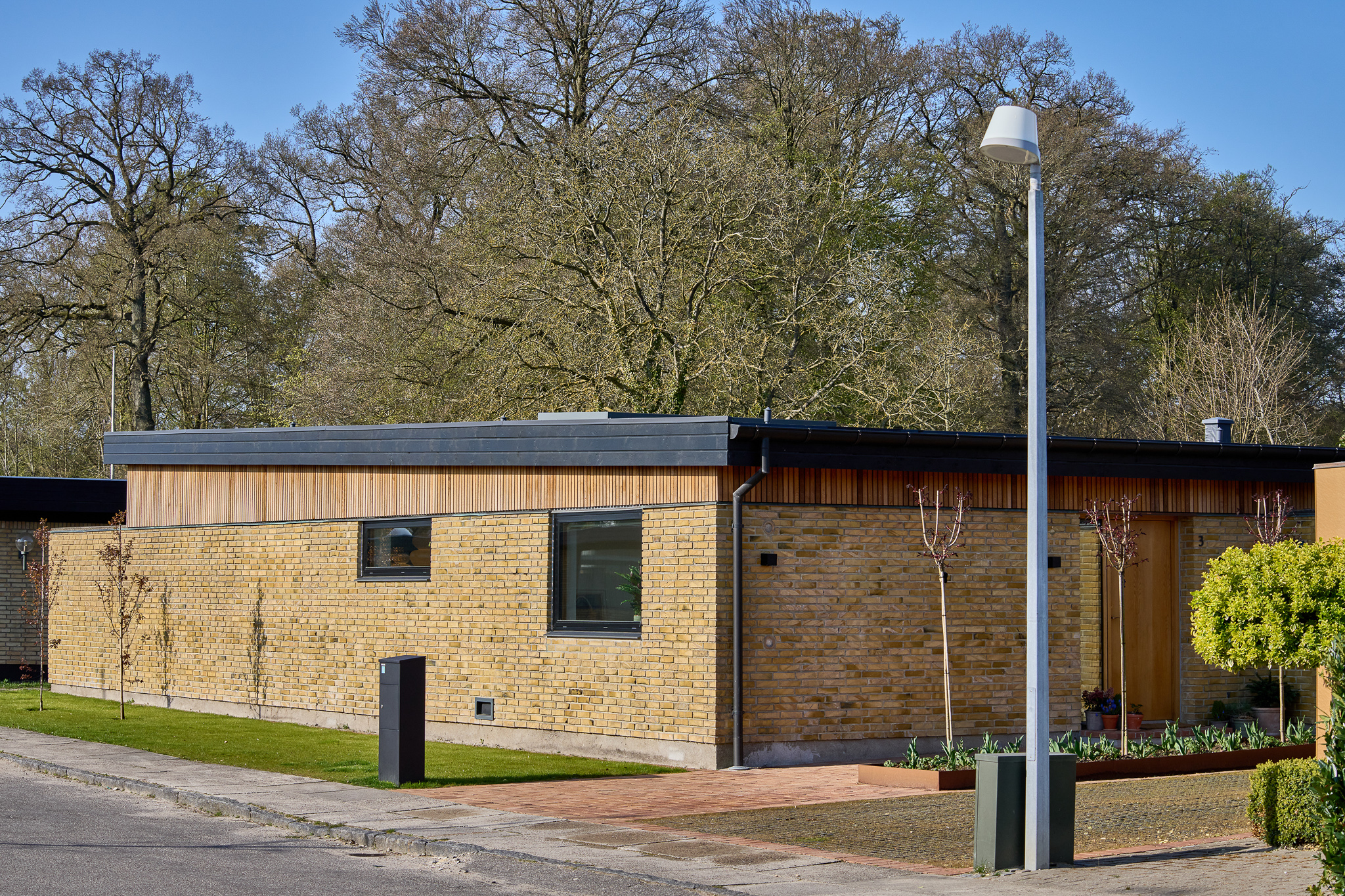 Villaen er ombygget med smukke genbrugssten, som matcher de gamle gule teglsten. De originale skabe er blevet sat i stand og genbrugt, og ombygningen bærer præg af materialer i træ. Træer er meget miljøvenlige, da de optager den CO2, vi udleder, når de vokser. Den CO2 kan vi så lagre i vores bygninger, når vi anvender træ som byggemateriale. Alle konstruktioner er også blevet isoleret iht. gældende krav i bygningsreglementet. Alle vinduer er blevet udskiftet, og elementerne er med 3 lags energiglas med solafskærmende klart glas mod syd og vest for at undgå overtemperatur i rummene om sommeren.