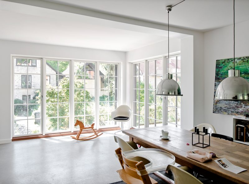 Vinduer: Her har man lavet ovenlys vinduer i kvist på 1. salens opholdsstue for maksimalt, naturligt lysindfald.