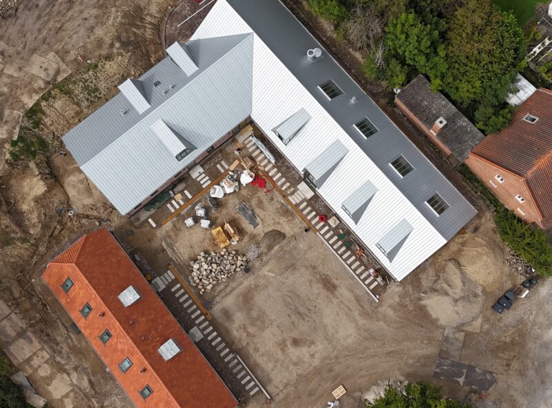 Vi ønskede at skabe et sted for hele landsbyen, hvor man kan bo, mødes og arbejde på nye, inspirerende måder. Her forenes virkelyst, fællesskab og æstetik, og der er nu føjet et nyt, levende kapitel til gårdens lange fortælling.