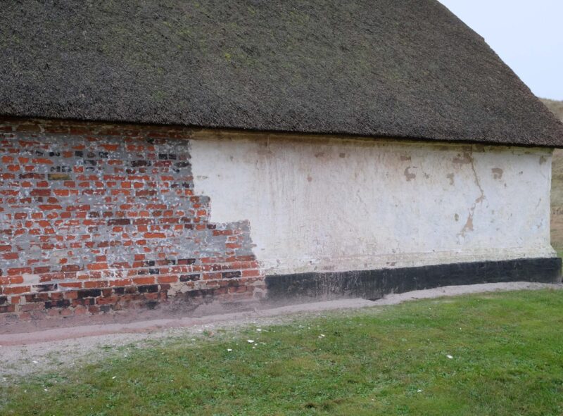 Tidligere var det almindeligt, at klitgårdene gik i arv, og der blev indrettet en aftægtsbolig til de gamle, så flere generationer boede samtidigt på gårdene, og da vedligeholdelsen var en del af de mange gøremål på gårdene, gik kendskabet til de gamle teknikker og materialer videre fra generation til generation. Men da denne livsform begyndte at ændre sig, og en ny tids byggematerialer og håndværkere kom på banen, begyndte den gamle byggeskik i bogstaveligste forstand at forfalde, og i dag er mange af gårdene forsøgt renoveret med moderne, men uegnede materialer og teknikker, der ikke fungerer sammen med de gamle bygninger og det hårde klima. Det var også aktuelt på Strandgaarden, da de nuværende ejere overtog gården. Den var sidst renoveret inden museets åbning i 1977, og meget af den renovering var udført med ”moderne” materialer, som ikke egner sig til den type ejendom.