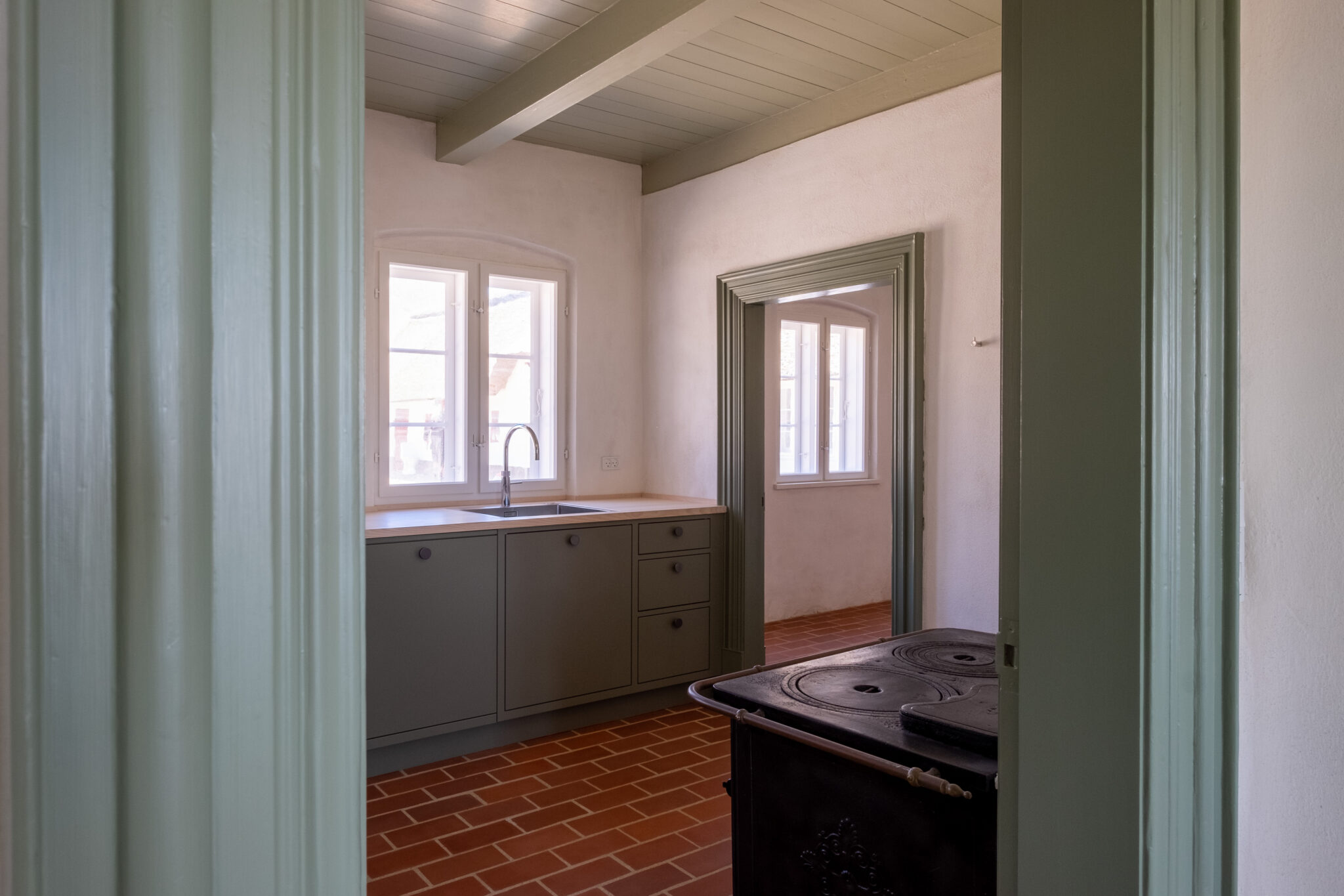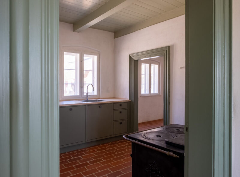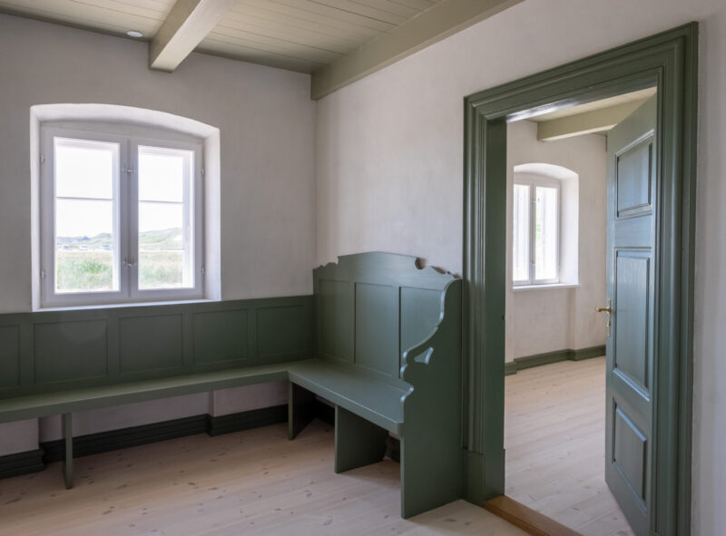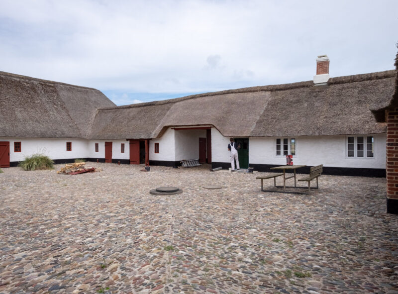 Denne materialeholdning præger også Strandgaarden, og ved renoveringen er der så vidt muligt benyttet traditionelle, gennemprøvede materialer, som sikrer et sundt indeklima og samtidig holder klimaaftrykket på samme lave niveau som da gården oprindeligt blev opført.