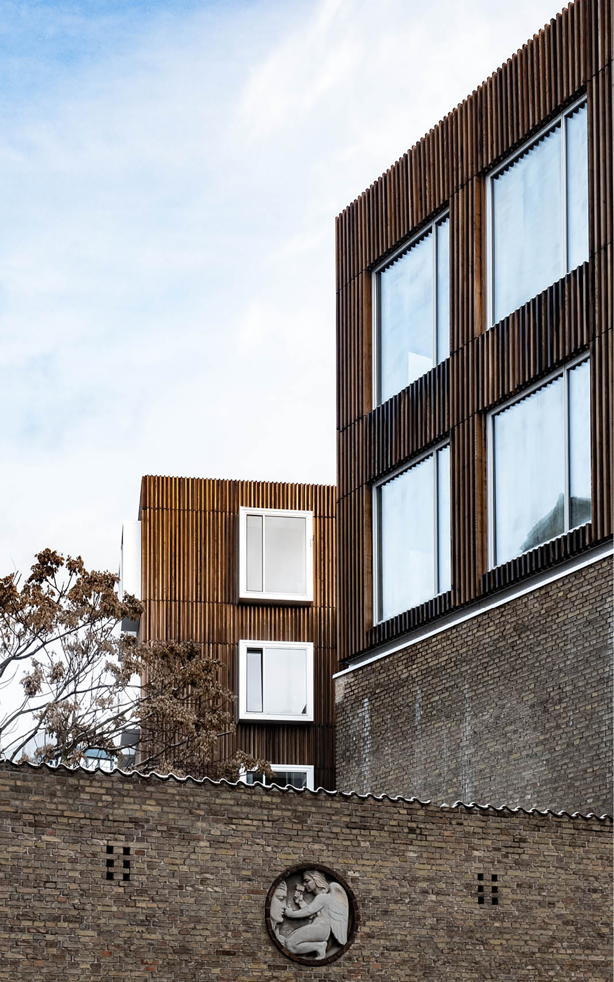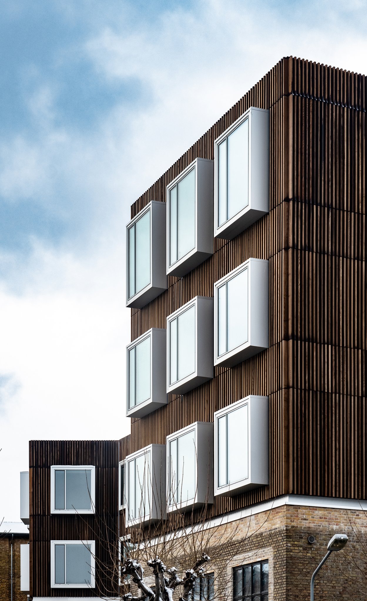 Holscher Nordberg har desuden udviklet et særligt vindue til den transformerede bygning, sådan at skyggespillet i asketræsfacaden og vinduesrammerne går i harmoni med hinanden.