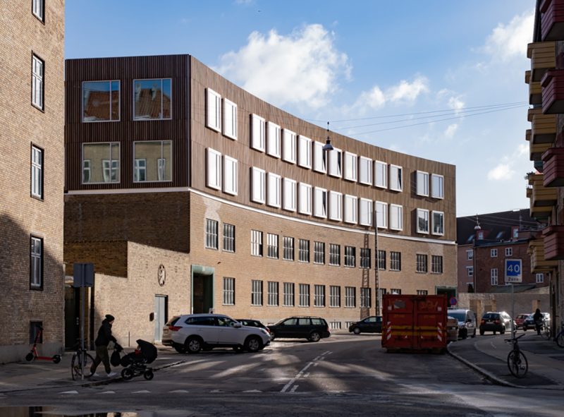 Den eksisterende murede bygning er efterisoleret. Ved at anvende en træbeklædning de nye øvre facader, har vi undladt at bruge CO2-krævende materialer som f.eks. tegl.