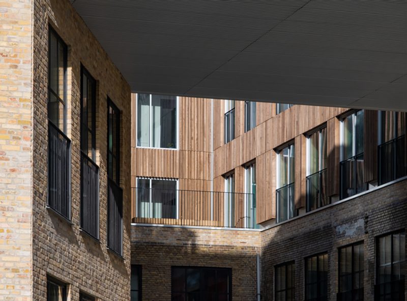 I Holscher Nordbergs transformation, er sydgavlen blevet åbnet, sådan at der strømmer langt mere dagslys ind i det grønne gårdrum – og dermed til boligerne omkring dette.