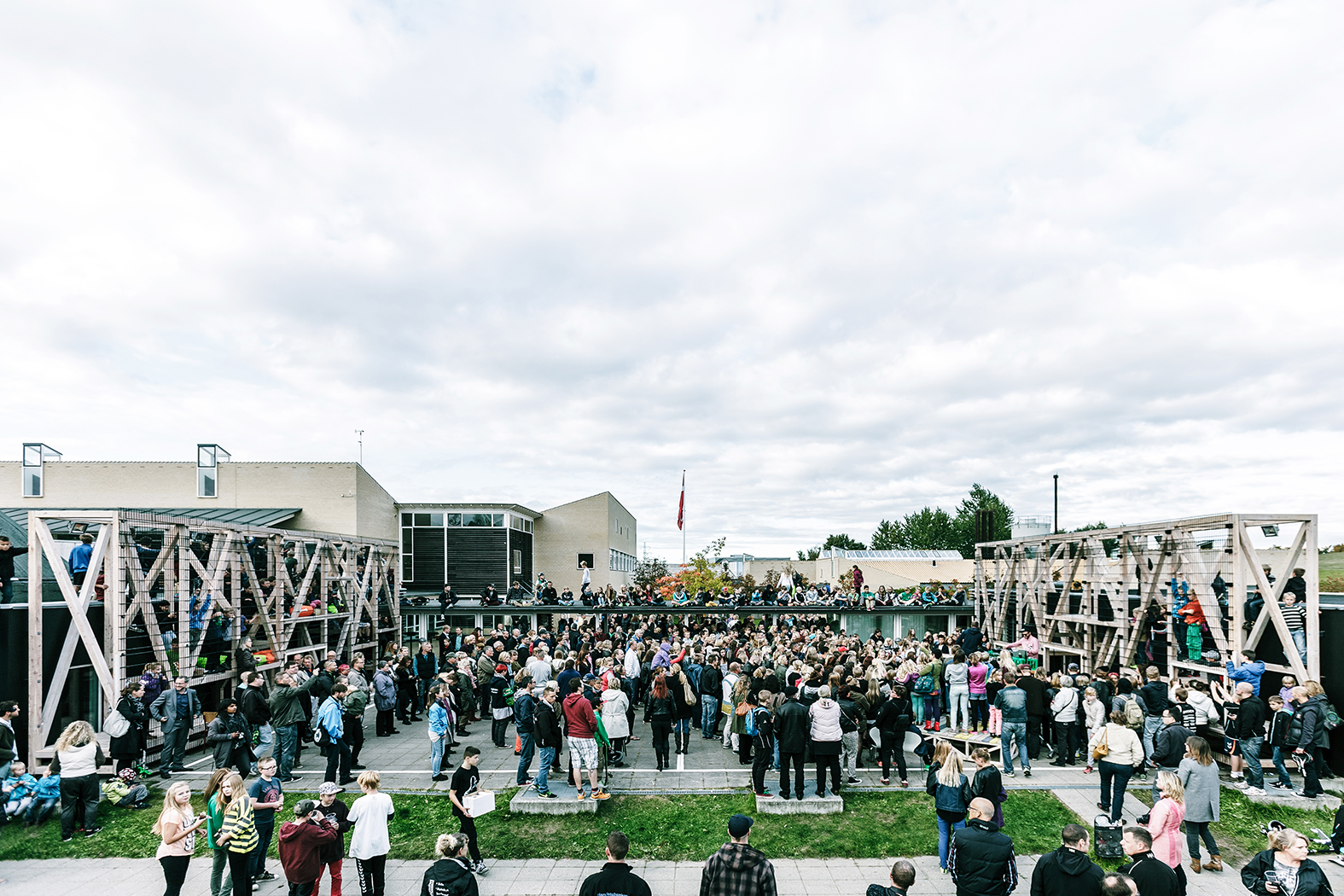 Sammen med teenagerne skitserede og byggede arkitekterne nogle kæmpe mål der kunne fange boldene, beskytte facaden og som man kunne hænge ud i. Nogle fleksible scener de kan bakse rundt med og optræde på. Derudover åbnedes også halvdelen af den ene væg med glasskydedøre for at optimere flowet mellem ude og inde.