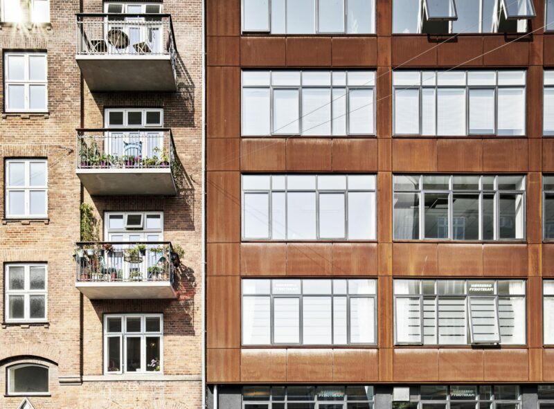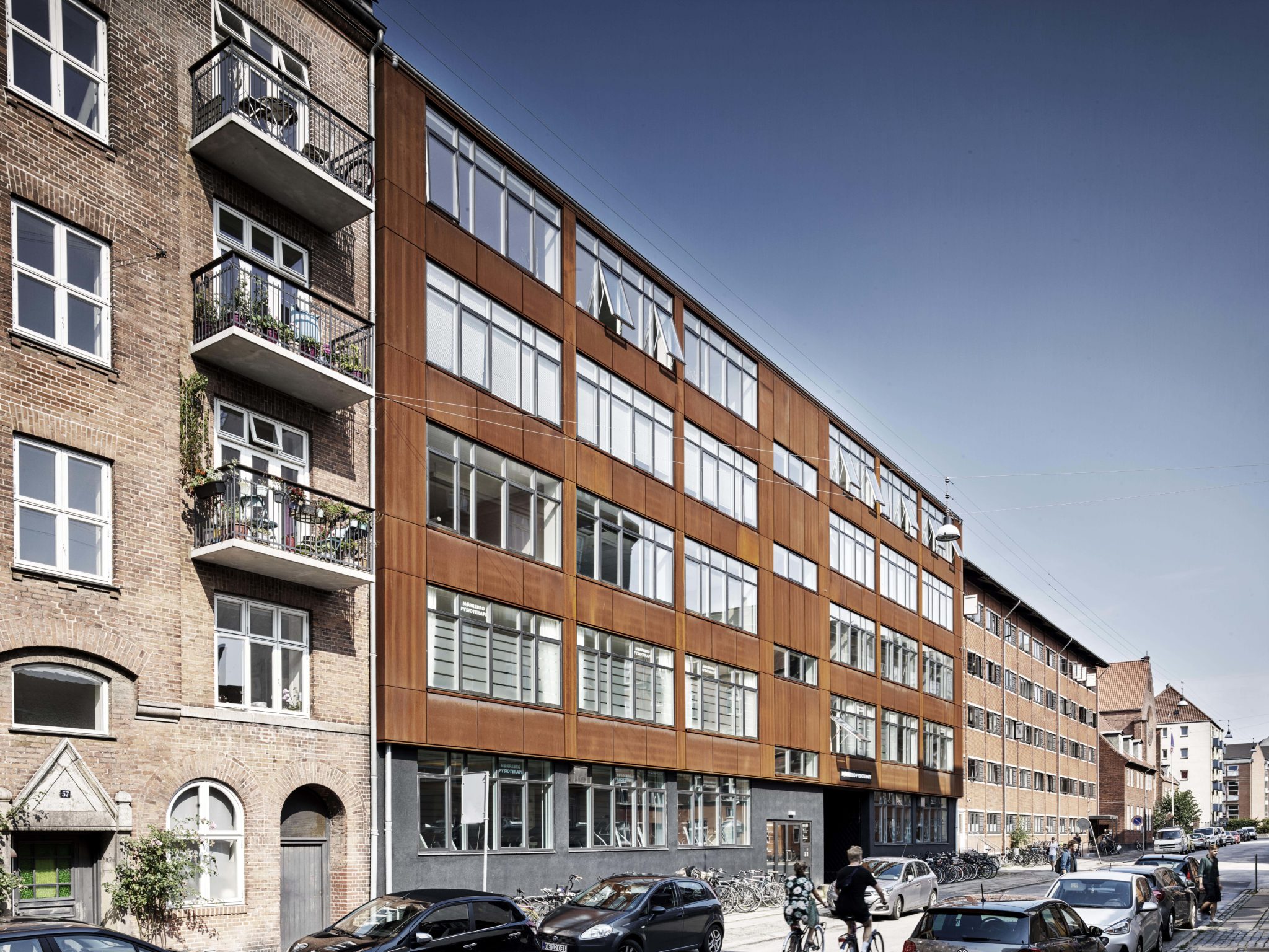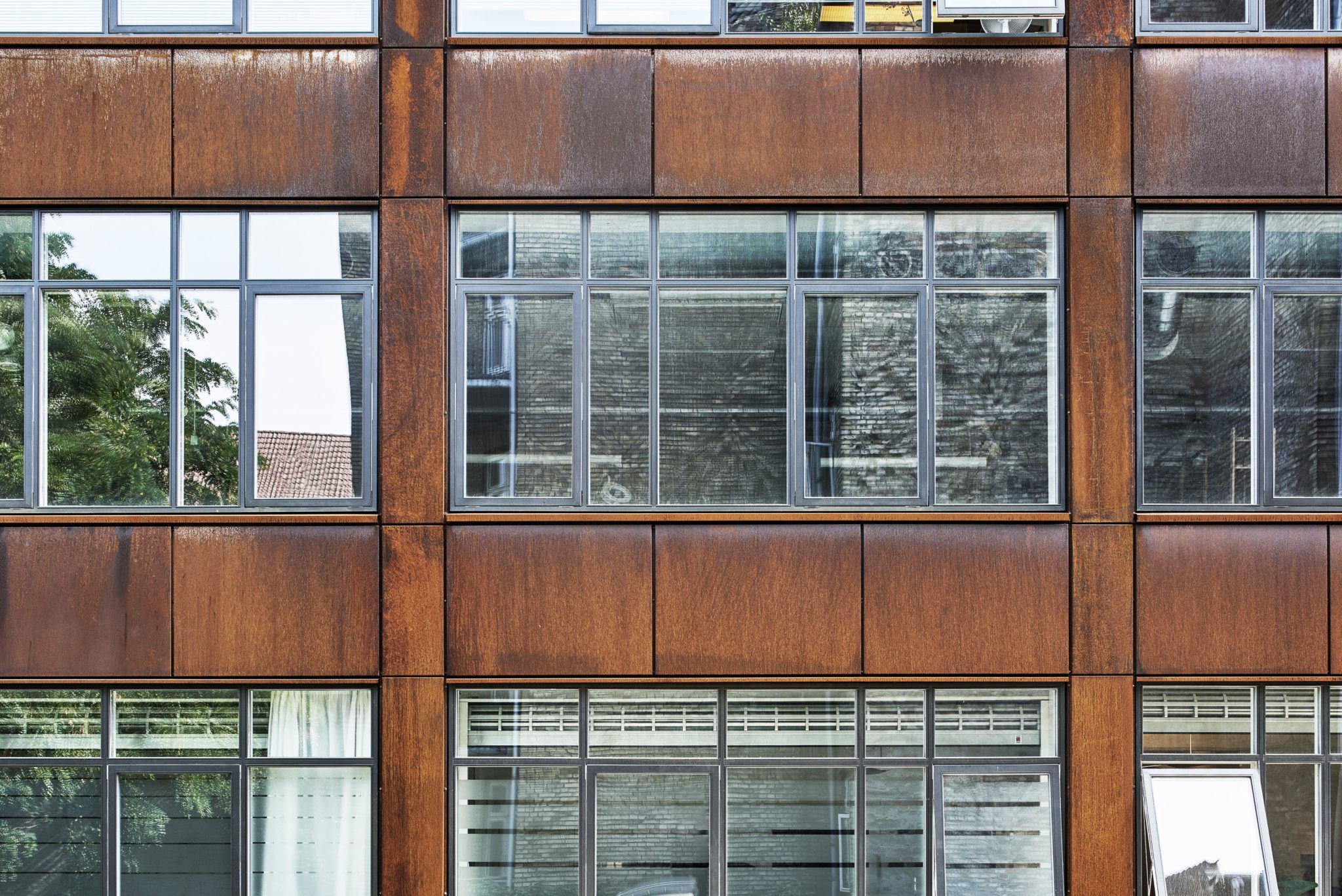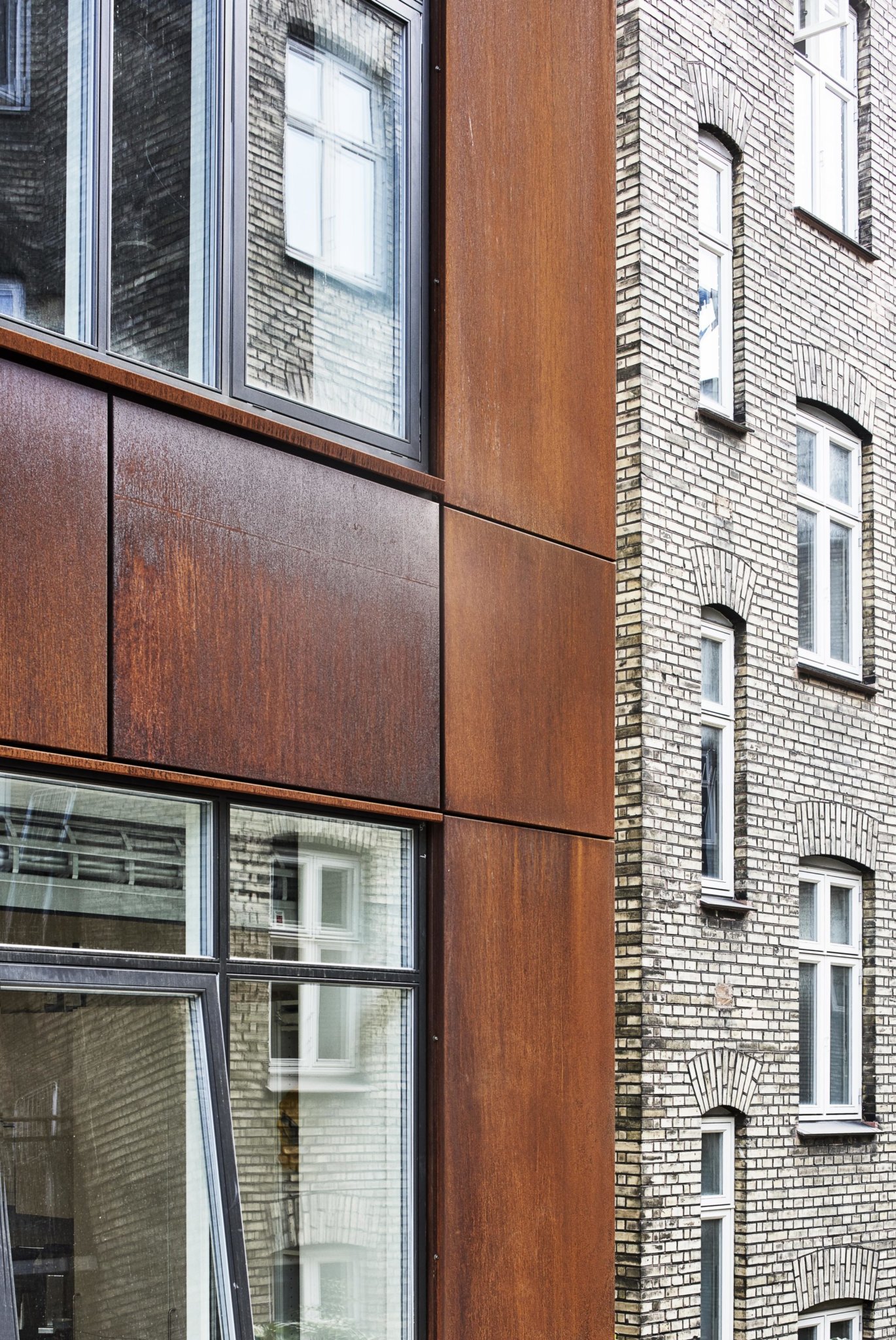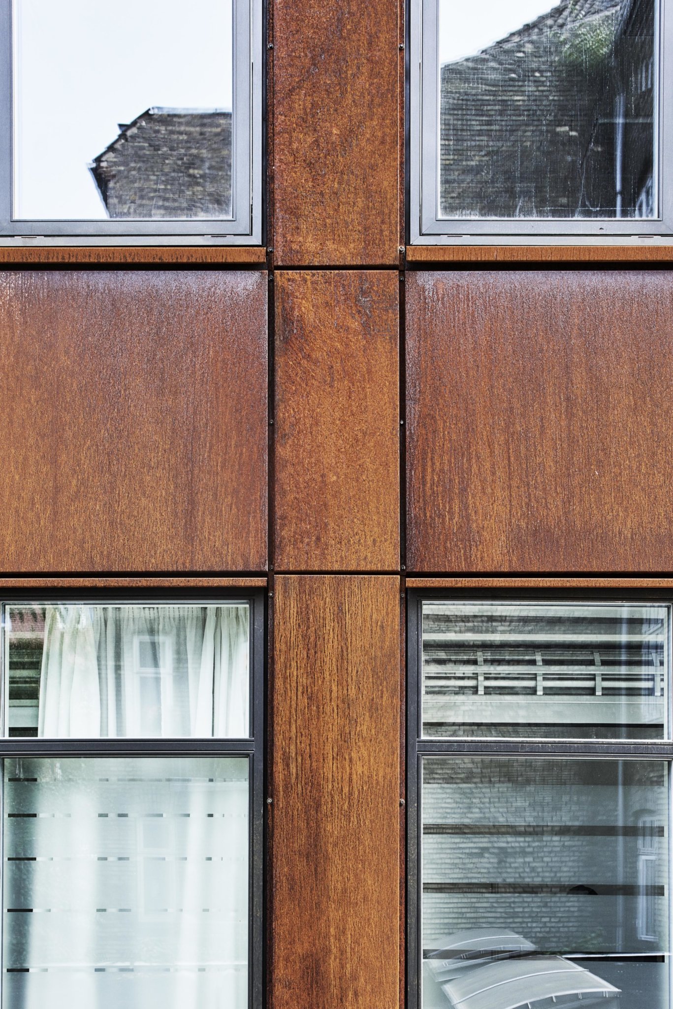 Projektet indskriver sig positivt i sine omgivelser. Ved brug af en Cortenstål facade tilpasser huset sig gadens røde teglsten samtidig med at huset fremstår robust og bevarer sine industrielle kvaliteter.