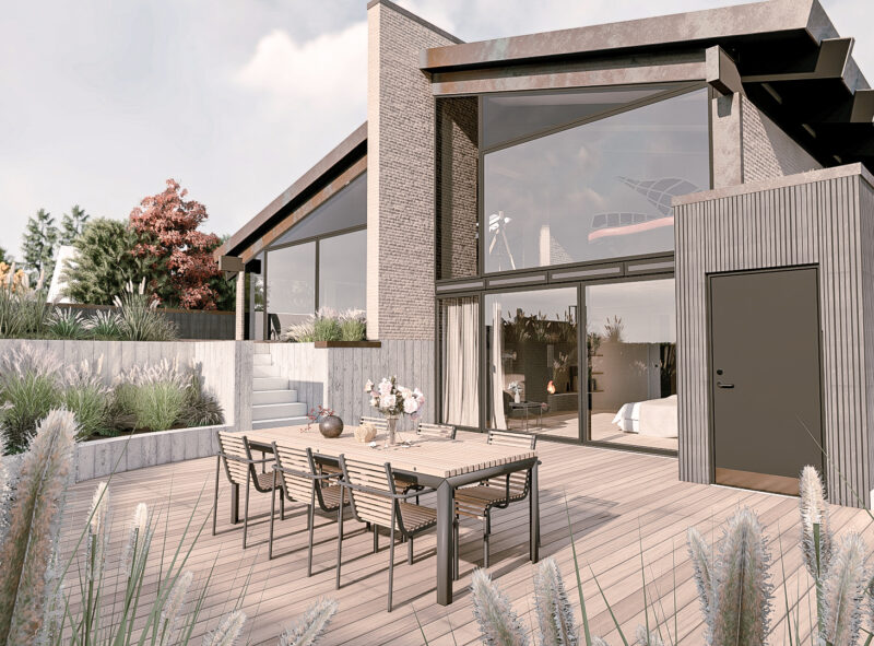 Samtidig er ombygningen et bæredygtigt valg. Ved at bevare og opgradere den eksisterende bygning frem for at bygge nyt, udnyttes de ressourcer, der allerede er investeret i huset. Kombinationen af bevaring og nutidig arkitektur sikrer et hjem med både historisk forankring og lang levetid – arkitektonisk, funktionelt og miljømæssigt.