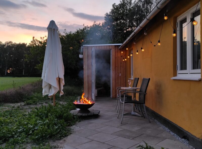 Selvom huset er lille, føles det rummeligt takket være den åbne planløsning og de mange opholdszoner, der giver beboerne mulighed for at nyde naturen og skifte mellem sol og læ.