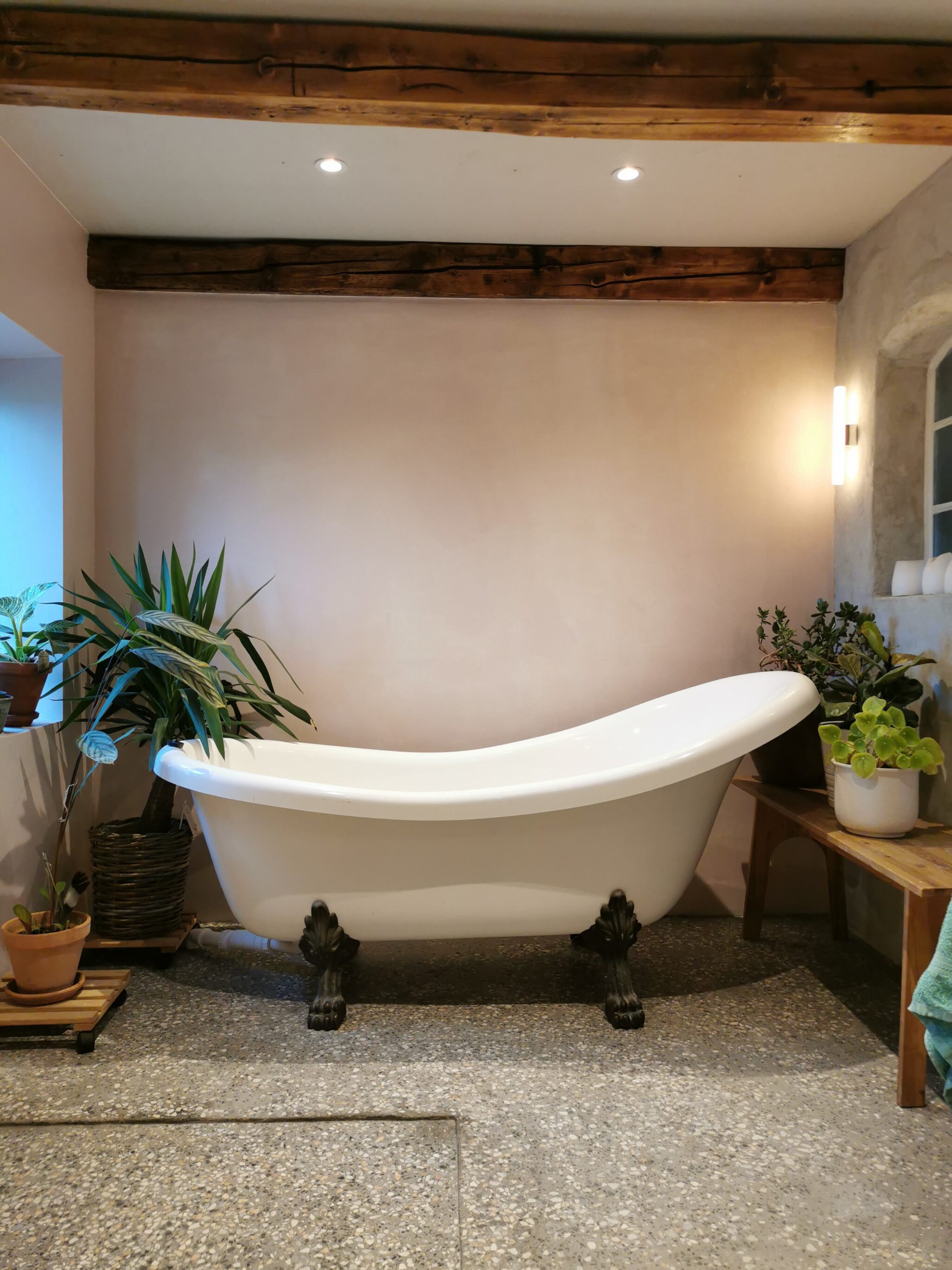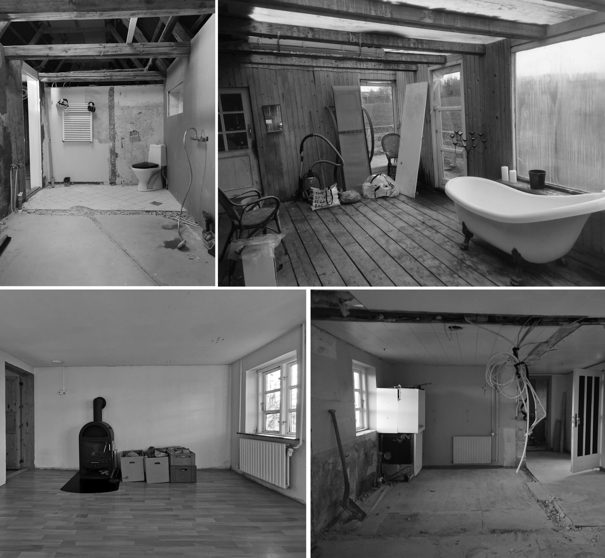Husets oprindelige struktur blev bevaret, hvor det var muligt. Taget, ydervæggene og de fleste indervægge blev stående, mens bjælker og hanebånd blev fremhævet med bejdse. På badeværelset blev der støbt et terrazzo-gulv, inspireret af husets oprindelsesperiode. Et genbrugt badekar blev placeret strategisk ved et nyindsat vindue, der giver udsigt til naturen.