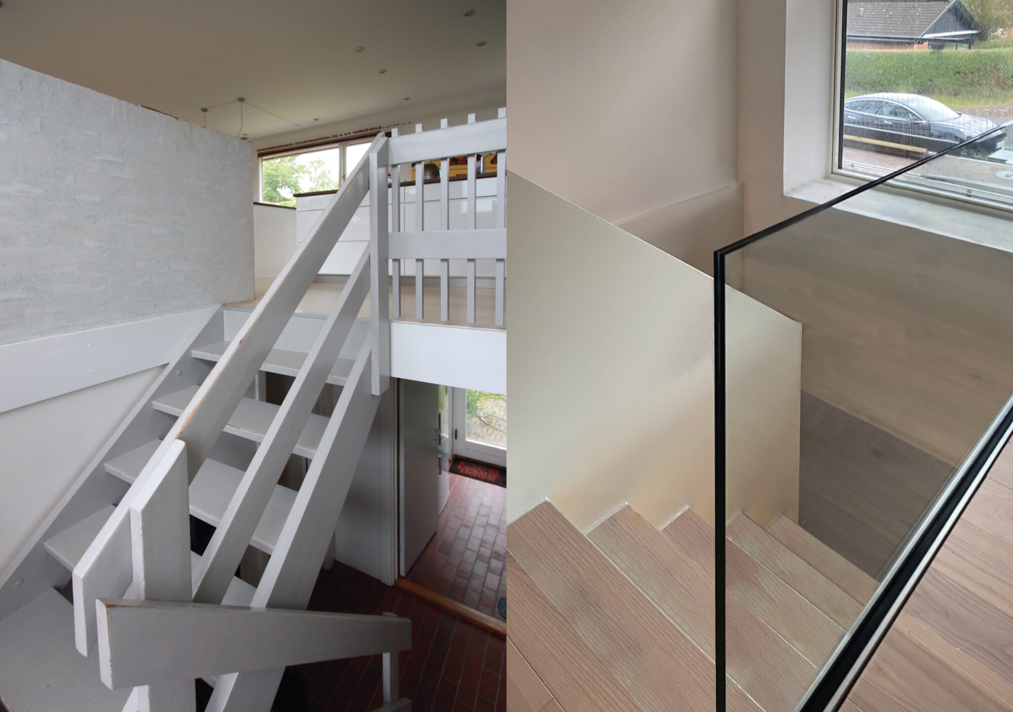 I tæt dialog med bygherre og entreprenør udvikledes et enkelt greb med en samlende træbeklædning og få men vigtige og nænsomme transformationer for eksempel af en eksisterende trappe. Desuden prioriteredes øget dagslys både i større glaspartier i facaden såvel som flere ny ovenlys.