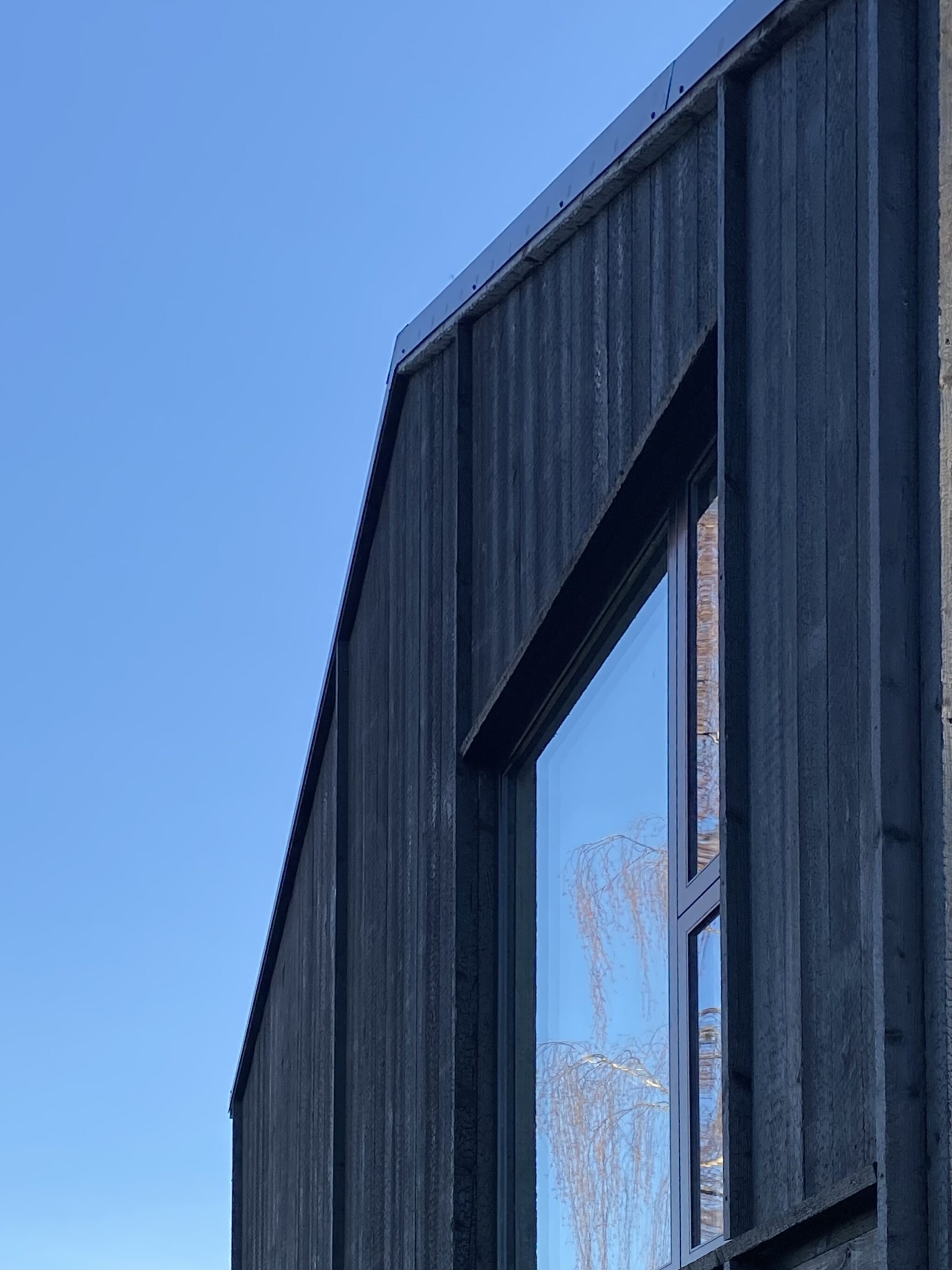 Udvendigt består den ny samlende facadeaptering af ild-behandlet træ, som skaber en homogen facade – men subtilt nuanceret med tre bredder lister, opsat i en bølgende bevægelse, som en skjult hilsen til det nært beliggende Øresund.