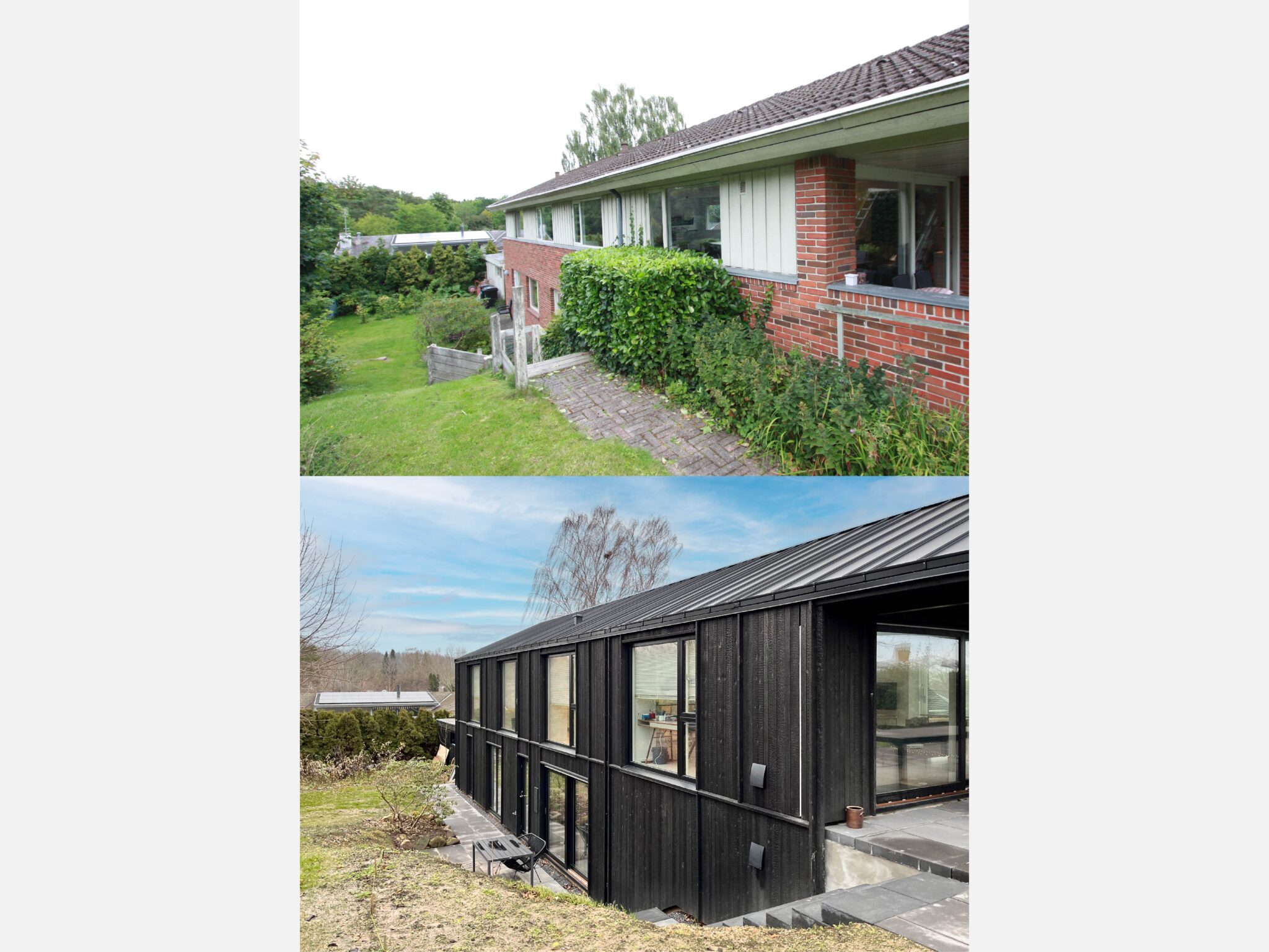 Konkret består projektet -udover flere rumlige om-disponeringer- af nyt tag, ny ovenlys, ny vinduer fra gulv til loft, ny efterisolering samt ny facadebeklædning med Yaki Sugi.