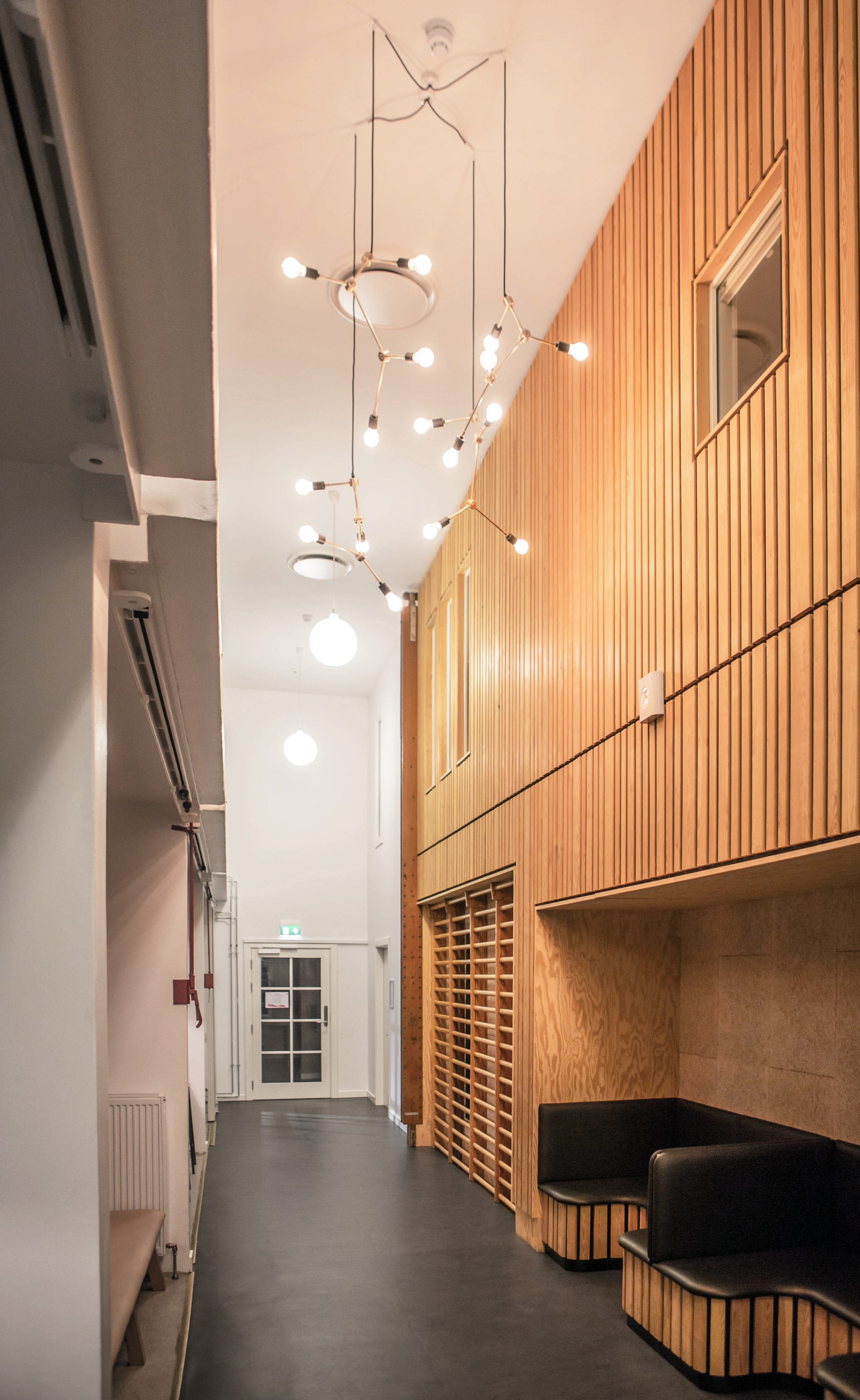 De renoverede gymnastiksale skulle fremstå som et svar på nutidens behov. Lysforhold, inkl. belysning, ventilation og overskud, men også "ekkoer" af den tidligere bygnings gedigne inventar og bygningsdele, har været afgørende parametre for valg af materialer og udførelse.