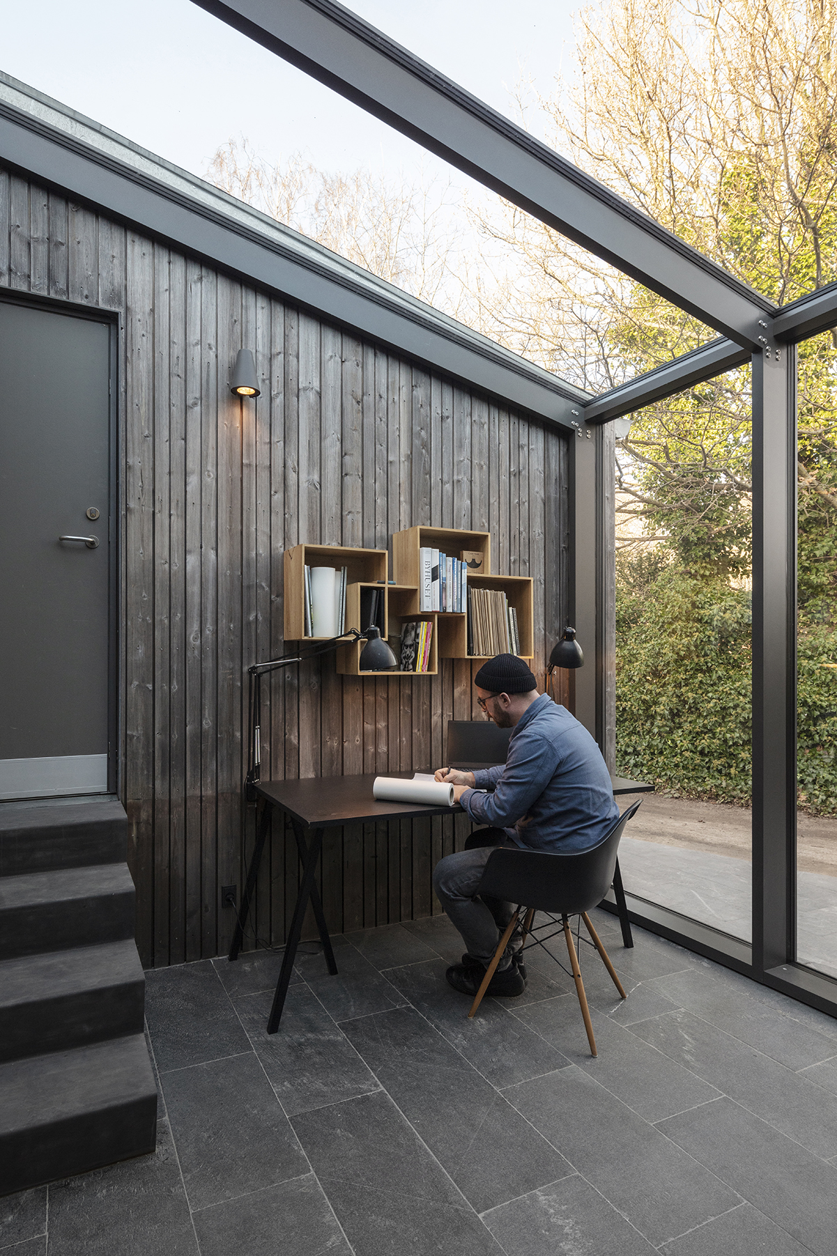 form af et mindre atrium i glas igen skal danne overgangen til et nyt lille anneks med samme