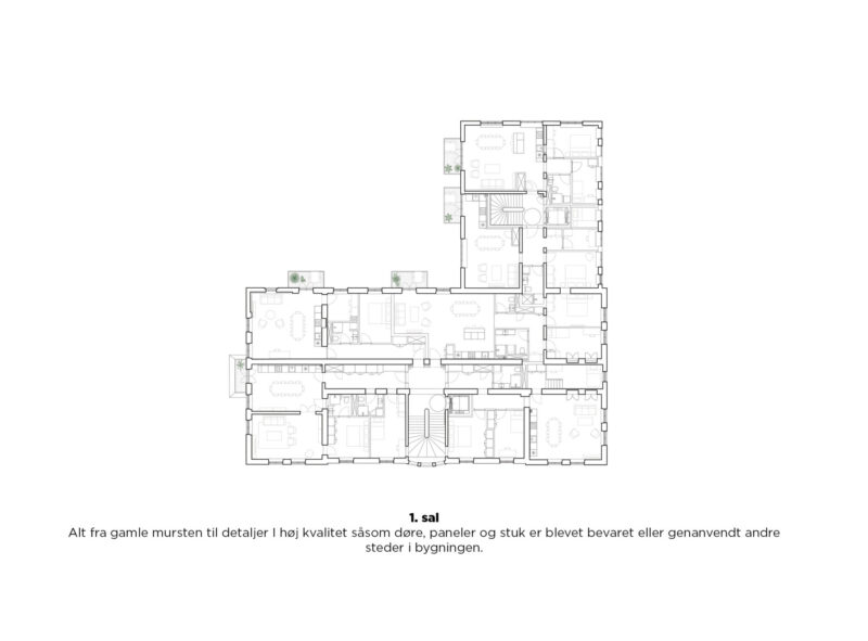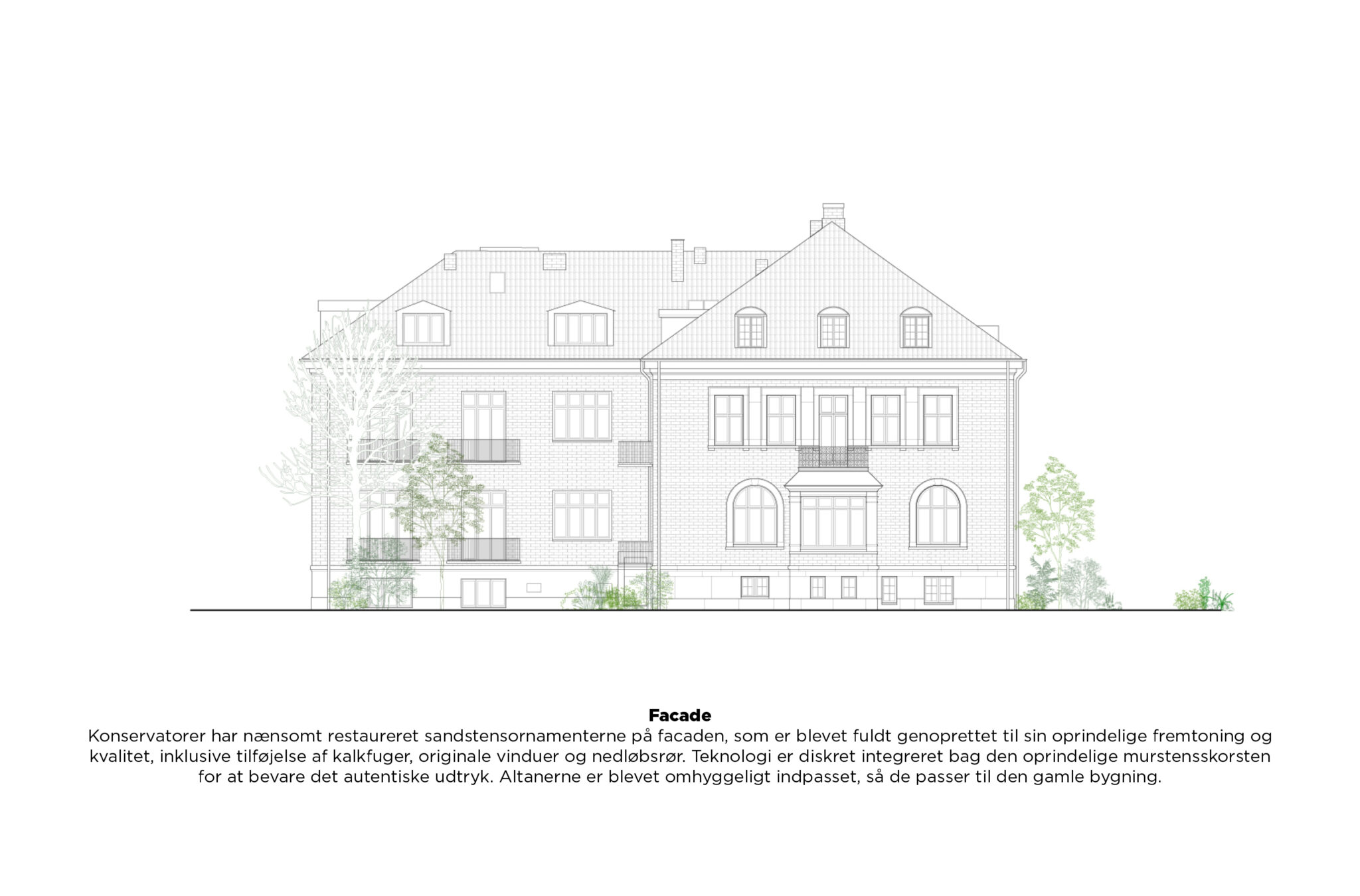 For at bevare identiteten, autenticiteten og historien på bedste vis, er transformationen af bygningerne udført indefra og ud således, at forskellene i den oprindelige palæ- og funkisstil, er videreført og bl.a. går igen i materialevalg, farveholdning og finurlige detaljer. Samtidig er der fra en udvendig synsvinkel skabt en samlet helhed ved at forbedre forbindelsen mellem de to bygninger. Dette er opnået ved at give dem ensartede vinduer og altaner samt ved at etablere en fælles gårdhave. Denne strategi har ikke kun styrket sammenhængen mellem bygningerne, men har også bidraget til at skabe et mere ensartet og harmonisk arkitektonisk udtryk.