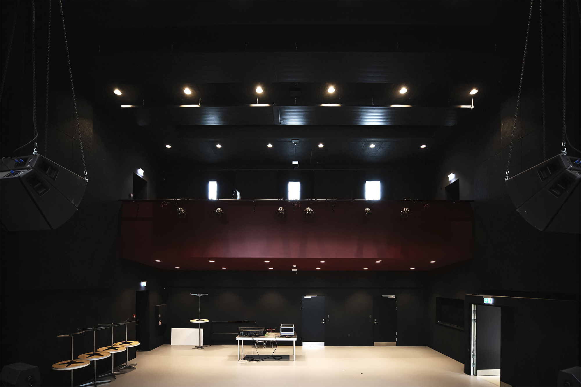 For at leve op til dette, er den eksisterende tidligere mejeribygning renoveret og omdannet til et auditorium, en black boks på cirka 170m2, der kan huse foredrag, koncerter og events. Ved siden af, og omkransende det tidligere mejeri, ligger tilbygningen med cirka 365m2 på stueetagen og 75m2 på førstesalen. Tilbygningen indeholdende foyer, mødelokaler og multifunktionelle rum. Ligeledes ligger backstage faciliteter, depot, et køkken og en bar, der både servicerer auditoriet og foyeren overfor.