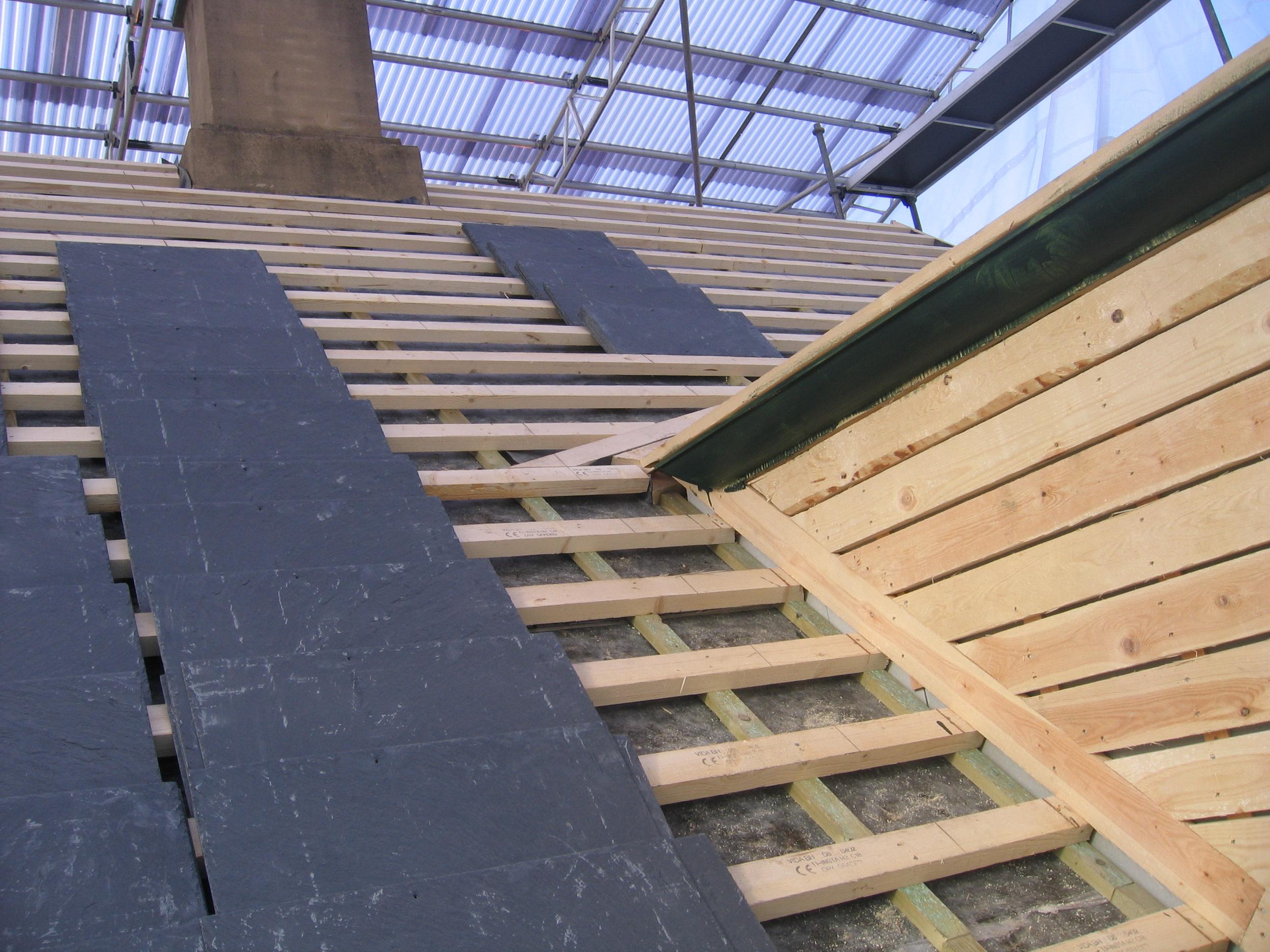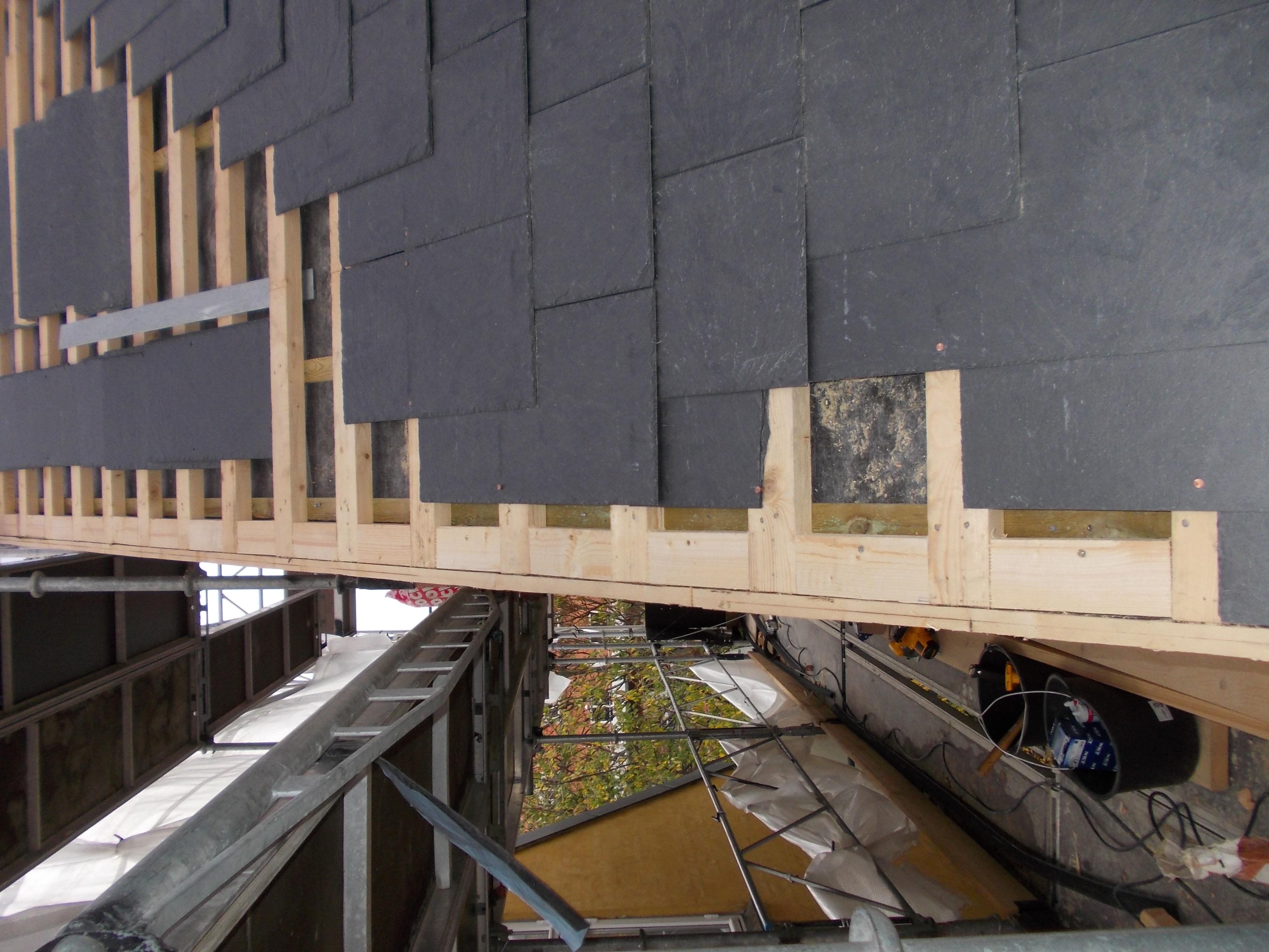 Valhøjvej 6 har i mange år trængt til nyt tag. Når det regnede, regnede det ned gennem taget til beboeren i kvistlejligheden på 2. sal og til beboerne på 1. sal! Det gamle tag var et betonteglstenstag med meget ringe udførte kvistinddækninger, gavlene og facaden var fugtskadede med flere sætningsrevner. Desuden var tagkonstruktionen rådskadet og tagryggen havde sat sig. Ejendommen er opført i 1899 af Valbys store bygherre, tømremester Hans Pedersen, som har opført mere end 150 ejendomme i Valby. Renoveringen blev gennemført som en byfornyelsessag i tæt samarbejde mellem Københavns kommune, den tekniske rådgiver og andelsboligforeningen, hvor der som nyt tag blev valgt naturskiffer (svarende til det oprindelige tag på huset), gavlene blev filtsede, sætningsrevnerne i gårdfacaden blev udbedret og gårdfacaden blev filtset, sålbænkene blev pudset, gesimsbåndet (som var i meget dårlig stand) blev pudset op, ruderne (gamle etlags-ruder) blev udskiftet til energiruder, vinduerne blev malet, for- og bagdøre blev malet, soklen blev pudset op og der kom ekstra ventilationshuller i soklen for at forbedre luftcirkulationen i kælderen. Takket være fagligt dygtige håndværkere er det lykkedes at undgå at mure et ekstra skifte på gavlene for at rette taget op. Det nye tag, ny loftsisolering og nye ruder har betydet, at ejendommen har bevæget sig et niveau på energimærkningsskalaen. Det nye skiffertag har medført, at ejendommen nu arkitektonisk passer ind sammen med alle de andre ejendomme med skiffertag på vejen.