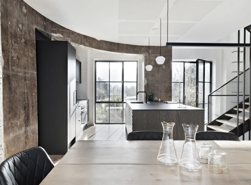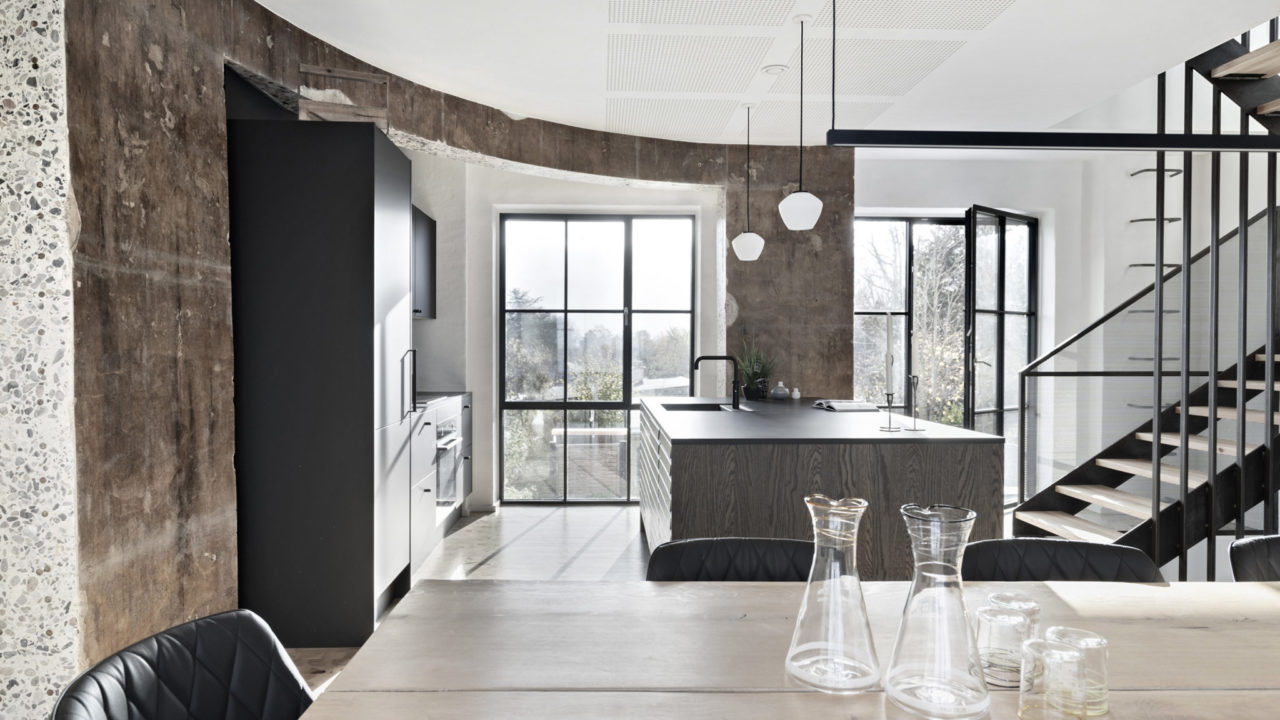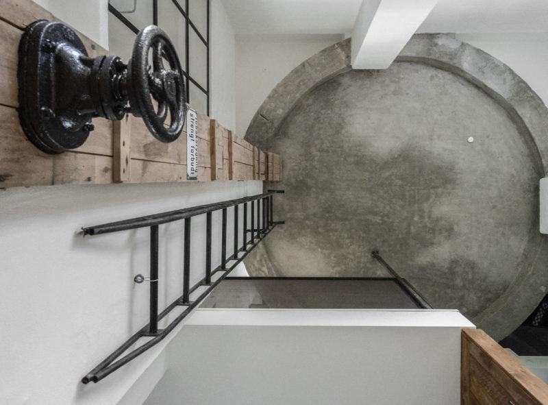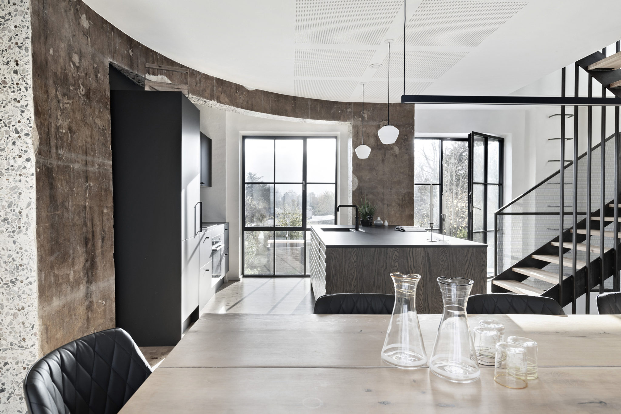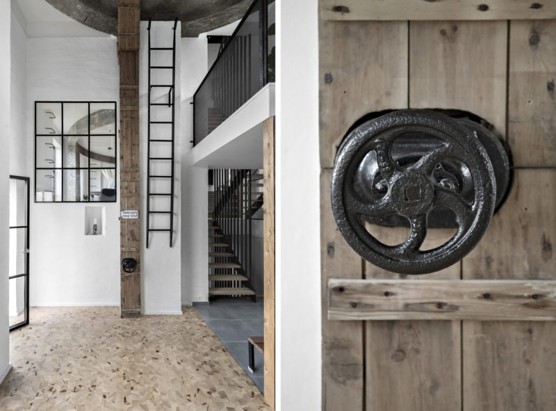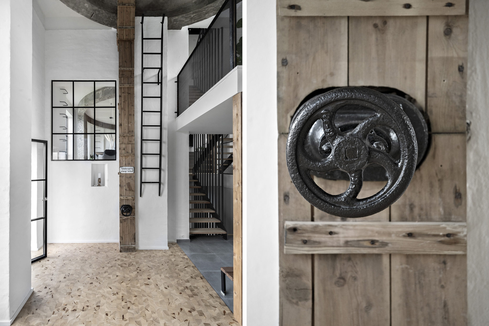 De oprindelige former, linjer og rammer er bevaret, og de synlige vandtanke er derved blevet et stærkt visuelt element i samtlige rum. Allerede fra entreen opleves en stue med 5 meter til bunden af den ene vandtank og udsigt over vandet.