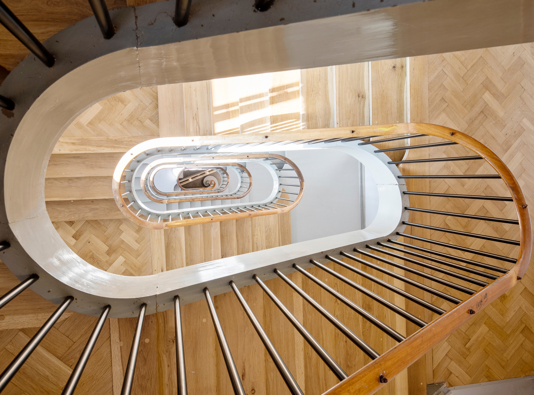 Bygningen har tidligere huset en badeanstalt, og er tegnet af Poul Holsøe i 1930, som nok er bedre kendt for at stå bag den Hvide Kødby få kilometer derfra. Arbejdet med den bevaringsværdige bygning har haft fokus på en respektfuld renovering med robuste materialer og bevaring af de originale detaljer, som stadig er tilbage i huset efter mange års brug. Bl.a. er den originale sildebensparket og de svungne håndlister bragt tilbage til sin originale stand i en af husets trappeopgange.