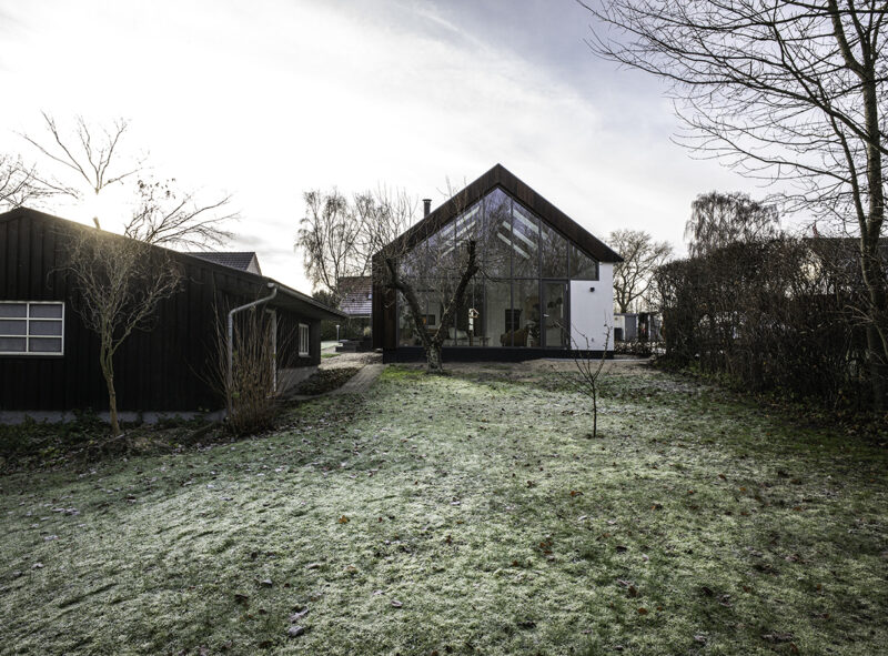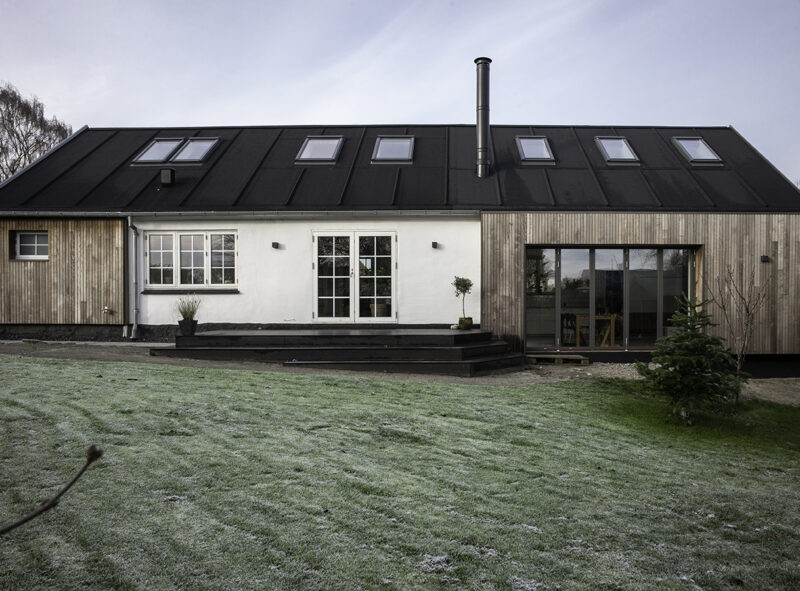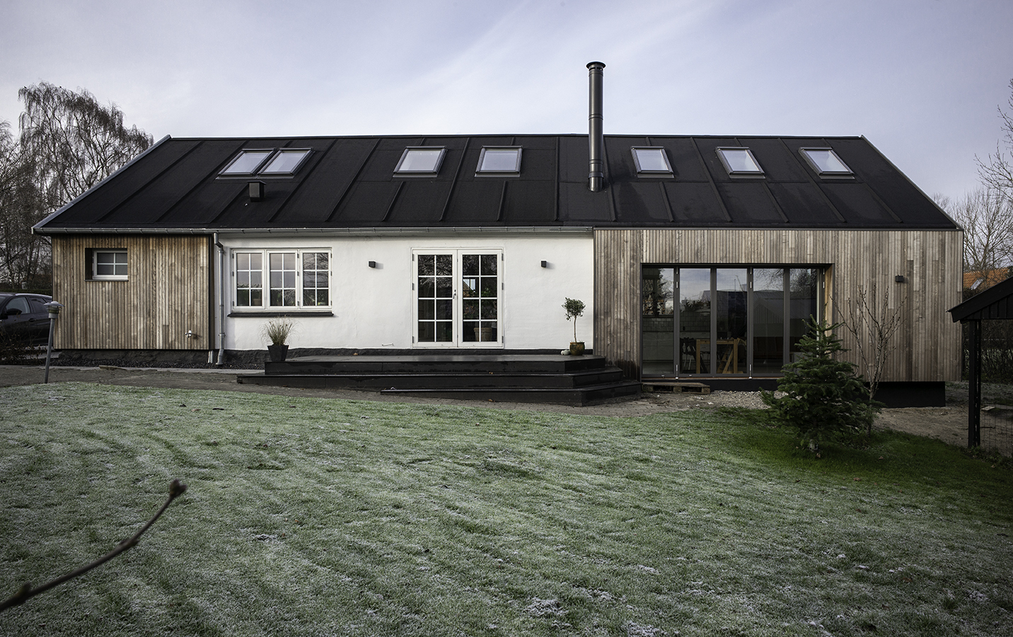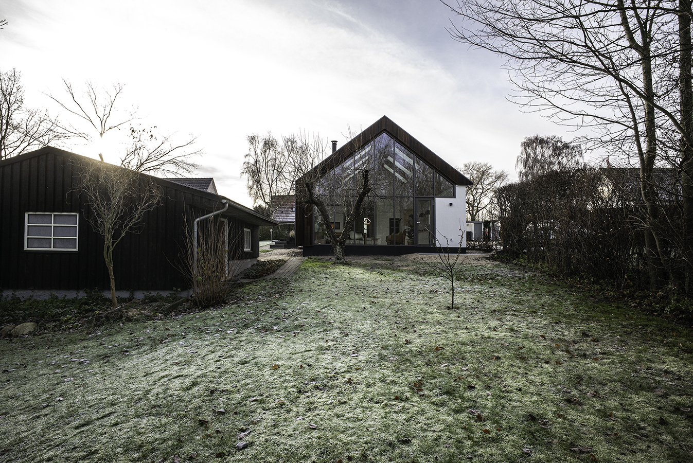 Projektet illustrerer på fineste vis hvordan et gammelt hvidpudset bondehus fra 1867 kan udvides og gennemrenoveres uden at give køb på det landsby præg som området er karakteriseret af og samtidig løfte husets haveside til en med en ny og varm træbeklædt facade der binder husets indvendige træbeklædte lofter og trappe samme med huset ydre.