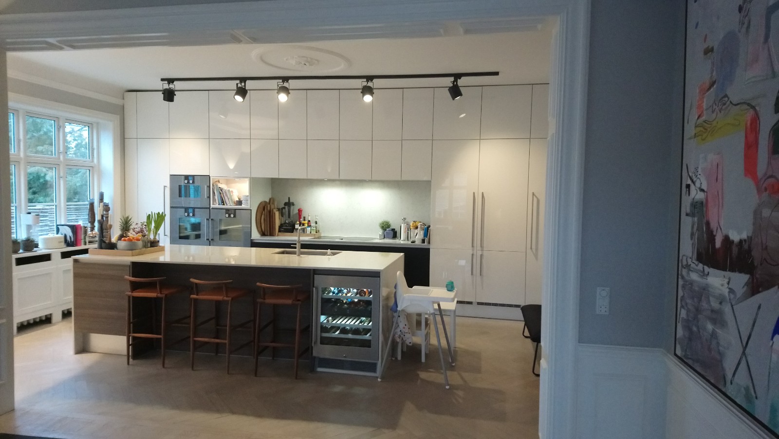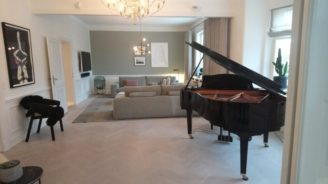 Alle lister, fodpaneler mm., er blevet fremstillet på værksted efter originale tegninger og tilpasset på stedet.