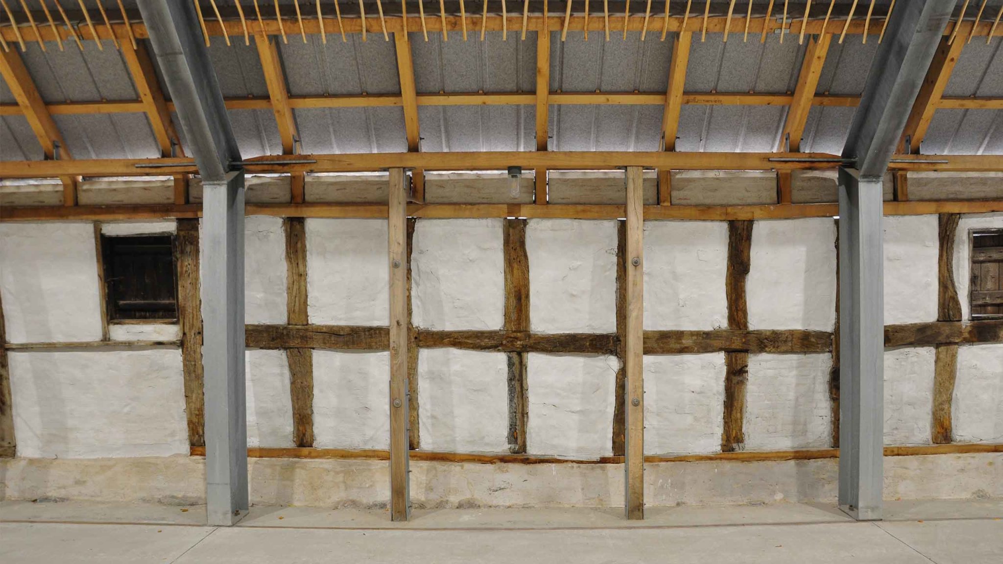 Det var sidste udkald for bindingsværksladen, hvis den skulle bevares og for eftertiden sikres som et af Villerups vartegn. Ikke nok med at højremskonstruktionen var ormædt – den var blevet klippet og klistret i med telefonpæle og andre forhåndenværende materialer, og vestfacadens skrånede bindingsværk havde helt mistet forbindelsen til resten. Laden var på grænsen til kollaps så der skulle findes en metode til at sikre den. Men den skulle ikke bare overleve, den skulle også sikres funktionelt og bidrage til anlæggets aktive centrum. Kunne den ikke det, skulle den fjernes og erstattes af en ny bygning.