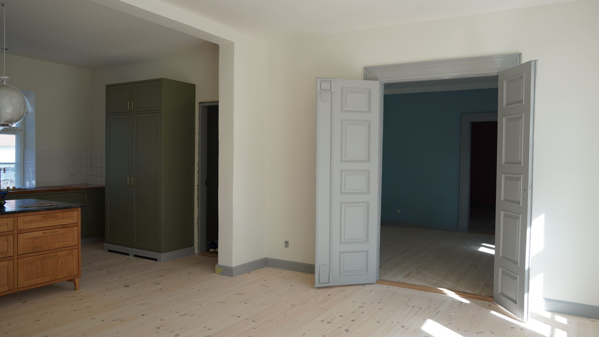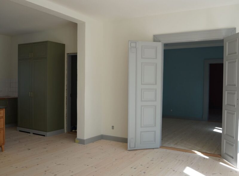 Skimmelsanering af præstegård, hvor et århundredes fugtproblemer er løst gennem en nænsom og helhedsorienteret indsats, der forener moderne boligkomfort med respekt for de historiske detaljer.