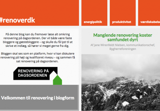 Siden 2011 har initiativet ’Renovering på dagsordenen’ arbejdet for et øget fokus på forbedringer i renoveringssektoren. Nu tager organisationerne bag projektet skridtet videre med en ny og omfattende web-blog, der skal være samlingspunkt for vidensdeling og inspirere til debat omkring bygningsrenovering som samfundstema. Både offentligt, politisk og internt i branchen.